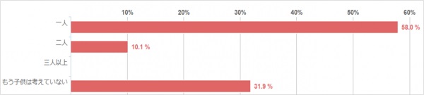 「もう一人ほしい」と考えているママさんは58%いらっしゃいましたが、31.9%のママさんは「もうお子さんは考えていない」という結果になりました。