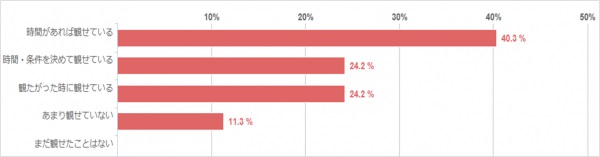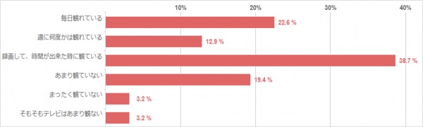 最も多かったのが「録画して、時間が出来た時に観ている」で38.7%でした。観たい番組を録画することで、育児や家事に時間を取られても、お子さんを寝かしつけてから・・・や、ご主人の休日に・・・など、ご自分の好きな時に観ることができます。