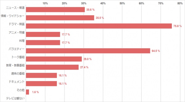「ドラマ・映画」が最も人気で、75.8%のママさんに選ばれていました。ドラマだと毎週決まった時間に放送するため、録画もしやすいです。