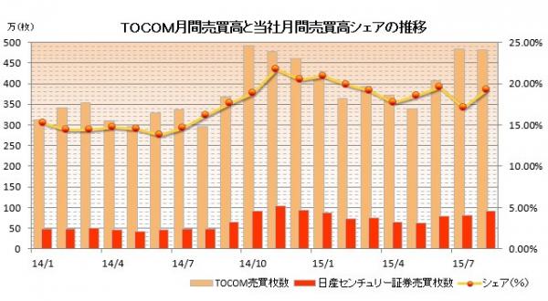東京商品取引所(以下、TOCOM)における日産センチュリー証券(所在地:東京都中央区 代表取締役社長:二家英彰)の2015年8月の取引実績を下記の通りお知らせいたします。