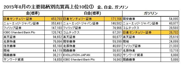 東京商品取引所における2015年8月の取引実績のお知らせ