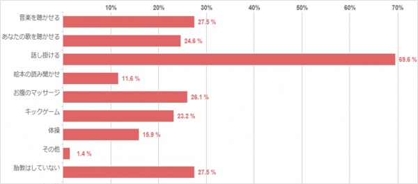 また「胎教はしていない」という方は27.5%で、胎教については必要ないと考えているママさんもいらっしゃることが分かりました。