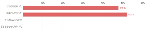 「写真のみもらった」という方は52.2%、「写真もビデオももらった」という方は47.8%だったので、胎児の時の様子を記録したエコー写真やビデオは皆さんにとっても貴重なものだということが分かりました。