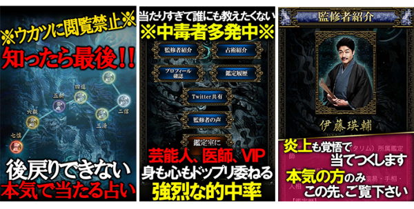 監修者は数々の占術に深い造詣を持ち、若手の鑑定士からもその知識に高い信頼を持たれる「伊藤瑛輔」を迎え、この「七真占」を完成させました。これを知ったが最後、嫌でも現実が分かり、そして変わります。本気で自らの人生に立ち向かうことができる方のみこの先、ご覧下さい。