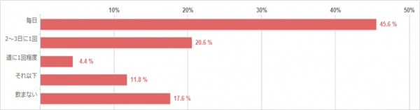 「毎日」とお答えになったのが45.6%のママさんで、4割以上のママさんが毎日コーヒーをお飲みになる習慣をお持ちだということが分かりました。