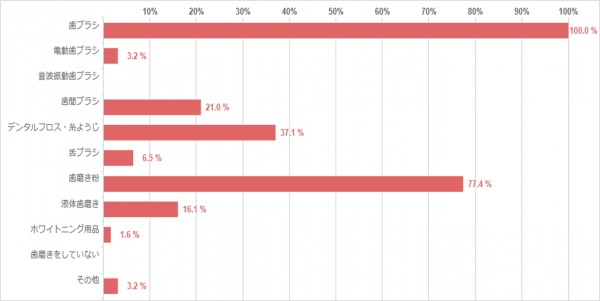 ●歯ブラシ使用率は100%!では、他のデンタルケアアイテムは?