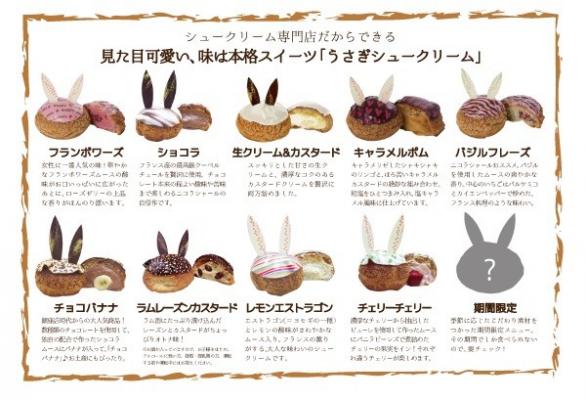 今回は、うさぎシュークリームの種類が10種類に増えたよ!