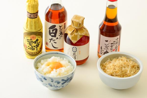 新米と新鮮なたまご、いわし削り、ごま油に、味付けは三種類(醤油・白だし・煎り酒)の中からお選びください。