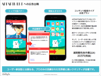 人気キャラクターや著名イラストレーターのキセカエを配信する人気アプリ「APPARTMENT」を運営するサンドディー・アイ・ジー株式会社は、企業向けの新サービスの提供を2015年9月29日に開始致します。
