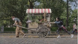 とある天気のいい公園通り。花屋のおじいさんの荷車を押すのをお手伝い。