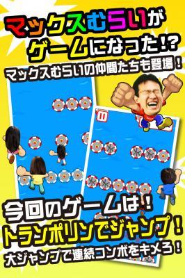 「マックスむらいのトランポリンジャンプ」は子供から大人まで誰でも簡単に楽しめるシンプルなiPhone、Android用ミニゲームです。
