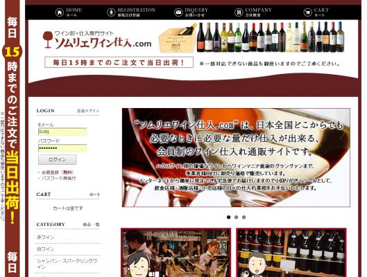 ワインの輸入・卸・ネット販売・実店舗での直販・レストラン経営まで、すべて自社で一括展開しオムニチャネル体制を構築する同社は、インターネットをベースに飲食店や酒販店/卸業者へ卸販売するBtoB(企業間取引)をおこなうためにBカートASPを導入し、「ソムリエワイン仕入.COM」として運営を開始しました。