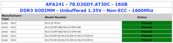 「高品質な1Gb×8 DRAMチップを用いてメモリ容量を16GBに拡大したApacerの16GB DDR3L 1600 SO-DIMMは、既存のメモリランクやスロットを最適化し、すばらしい信頼性と安定性を提供しています。Intel NUCミニPCでの互換性テストにおいて、これは並外れた性能を発揮しています」とCMTLのゼネラルマネージャーRaji T. Tannouri氏は語っています。DDR3L SO-DIMMは最高1600MHzの周波数で動作し、すばらしいデータ伝送効率を実現、高性能コンピューターシステムの性能をさらに改善するのに最適です。