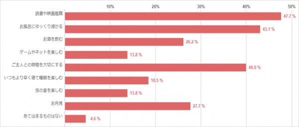 【質問】 秋の夜長、あなたがしたいことを全て選んでください。
