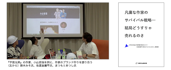 株式会社ボイジャー(本社:東京都渋谷区神宮前、代表取締役:鎌田純子、以下ボイジャー)は、作家のためのセルフブランディング実践手法を解説した『凡庸な作家のサバイバル戦略──結局どうすりゃ売れるのさ』を10月9日より電子/紙、同時出版いたします。本書は、2015年7月25日、NPO法人日本独立作家同盟(理事長:鷹野凌 http://www.allianceindependentauthors.jp)が主催した、鈴木みそ氏(マンガ家)、佐渡島庸平氏(株式会社コルク代表取締役、エージェント)、まつもとあつし氏(ジャーナリスト)といういずれもネット&出版の経験が豊富な三氏による講演をまとめたものです。