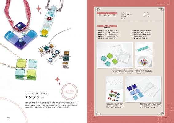 一般の家庭でも手軽に扱える電気炉を使用して30点にも及ぶ魅力的なガラスアクセサリーの作り方を解説しています。