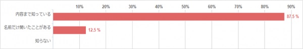 「内容まで知っている」という方が87.5%、「名前だけ知っている」という方が12.5%で、「ハロウィンを知らない」という方は0%でした。年々注目度が上がっており、年間行事として浸透しているようです。