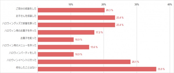 「何もしたことはない」という方が35.9%で、今までハロウィンに縁がなかったママさんが多い結果になりました。