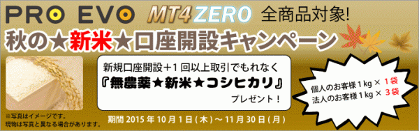 外為ファイネスト株式会社(本社:東京都千代田区、代表取締役:石野由美子)は、期間中にFX新規口座開設と1回以上取引を行ったお客様に「無農薬★新米★コシヒカリ」をプレゼントするキャンペーンを開催致します。
