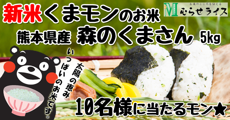 米穀の製造加工および販売を手掛ける、株式会社むらせ(所在地:〒238-0011神奈川県横須賀市米が浜通1-6、代表取締役:村瀬 慶太郎)は、2015年9月5日(月)10:30から「27年産新米 熊本県産森のくまさん 5kgが10名様に当たる」むらせライスモニプラキャンペーンを開始しました。