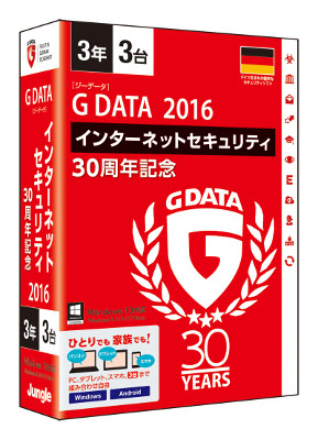 株式会社ジャングル(本社:東京都千代田区、代表取締役 高田晃子 以下、ジャングル)は、PC 専門誌や第三者テスト機関によって数多くの最高評価を獲得し続けている、G DATA Software AG (本社:ドイツ)の創業30周年を記念した特別パッケージ「G DATA インターネットセキュリティ 2016 30周年記念」(3年3台版)を、2015年 10月 16日(金)より全国の家電量販店および EC サイトで一斉に販売開始いたします。