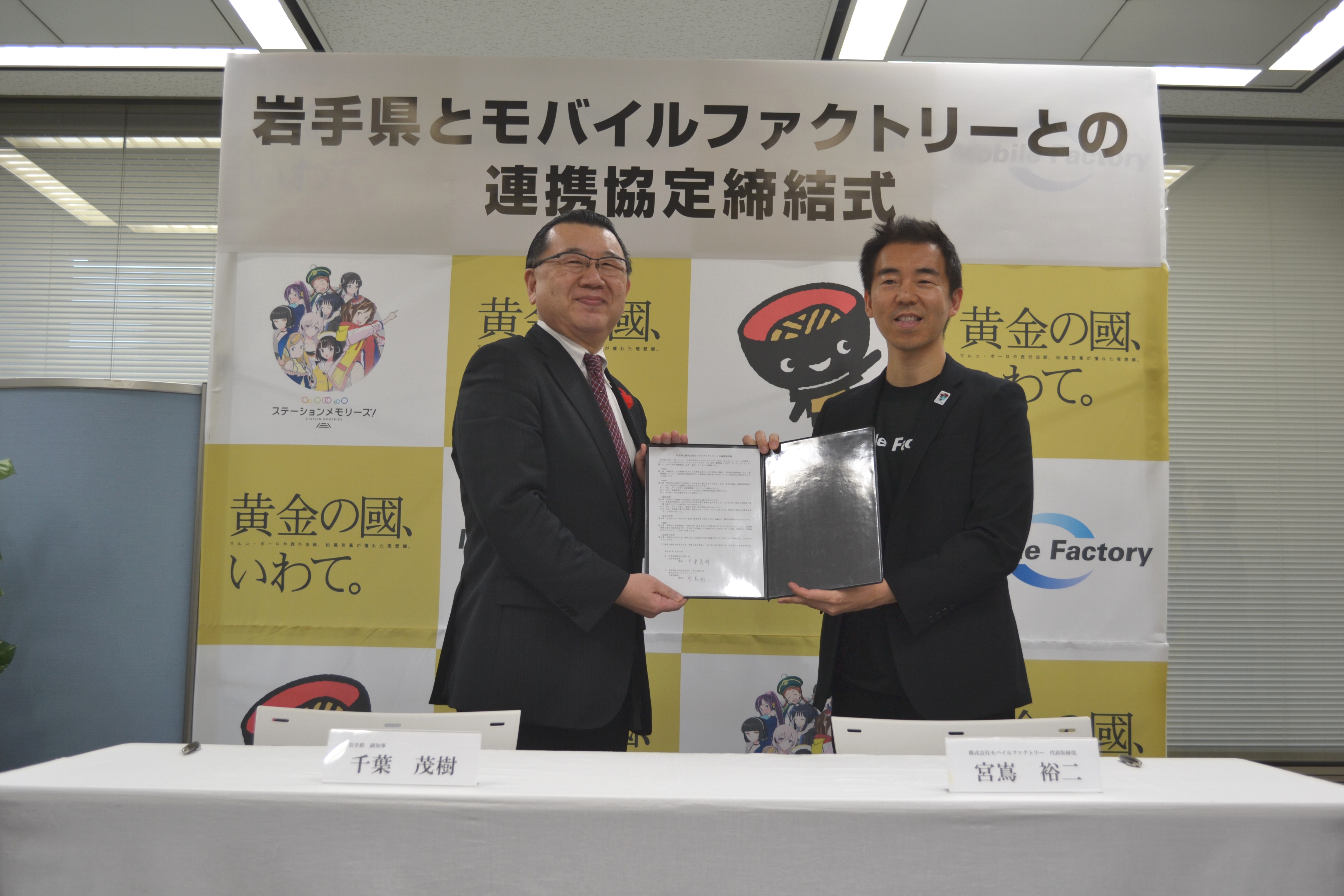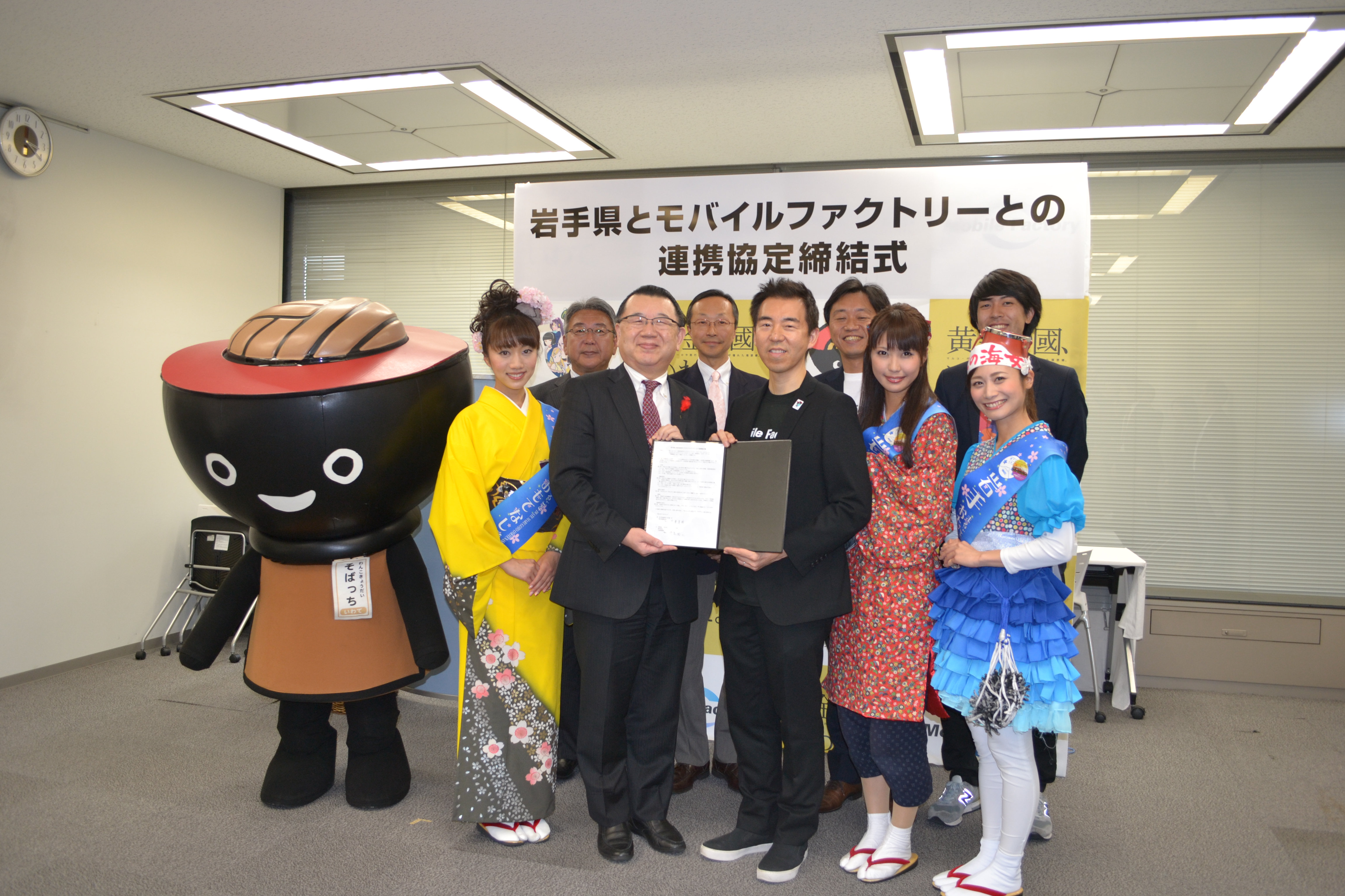 2015年10月5日(月)、株式会社モバイルファクトリー(本社:東京都品川区、代表取締役:宮嶌裕二 以下、モバイルファクトリー)と岩手県(知事:達増拓也)は岩手県の地域活性化に協力していくことを決定し、締結式を実施しました。
