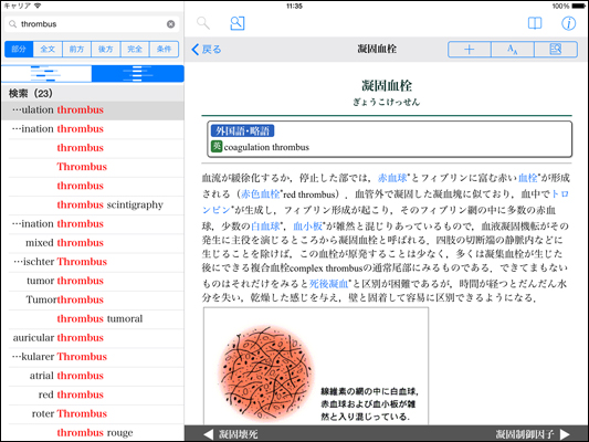 ●難解な医学用語も直感的に分かるKWIT(検索キーワードの中央一致)機能を搭載!!