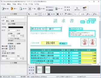 読込んだ用紙の欄に合わせて文字を入力したり、画像や図形を配置します。