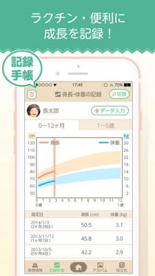 子供の身長・体重を記録すると、自動的にグラフ化し子供の成長を見ることができます。
