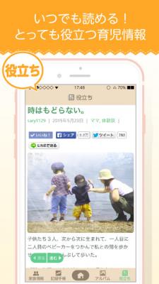 ・授乳、寝かしつけ、産後のマイナートラブルなど育児に関する悩みを解消するオリジナルコラムや、ワーキングママ、イクメン、保育園情報など、子育てに関連するお役立ち情報を無料で見ることができます。