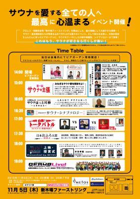 18:00 日本おふろ大賞(10分以内でサウナ愛を表現。サウナー、映像関係者、温浴関係者が制作。上映会&表彰式)