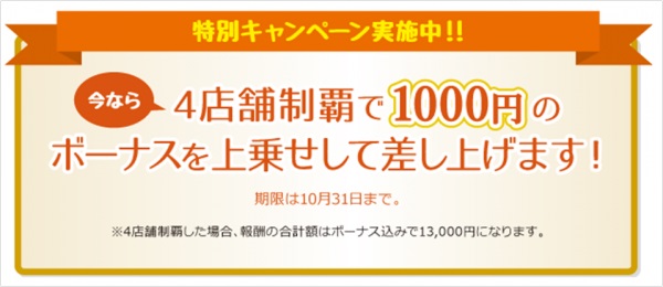 4店舗制覇した方には、ボーナスとして1000円を上乗せします!