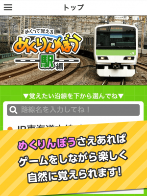 めくりんぼうとは、駅を覚えられるゲームアプリです。