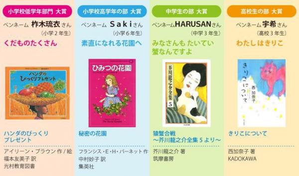 4回目を迎えた今回は、過去最多の応募となる13,855作品の応募がありました。小学生低学年、小学生高学年、中学生、高校生の各部門から大賞を4名、および審査委員長賞や出版社特別賞など各入賞作品を決定しました。 大賞受賞者には、『日本の歴史と文化に触れる感動の旅』をペアで贈呈します。審査にあたっては、「その文章を読んで、実際にその本を読みたくなったか」を重視し、文章力や表現力、オリジナリティーを加味して総合的に評価しました。