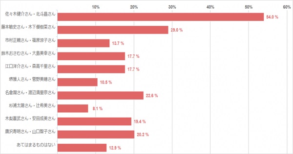 【質問】 結婚報道を知って驚いたカップルは、どのご夫婦でしたか?