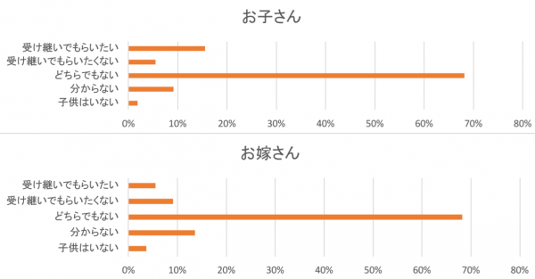 小さいお子さんを持つママさんにとって、ご自身のお味噌汁の味を受け継いでもらいたいかどうかは、まだ分からないとお答えになられました。ですが、「子供には受け継いでもらいたい」と回答された方は15.5%いらっしゃいますが、「お嫁さんに受け継いでもらいたい」と回答された方は5.5%と、お嫁さんに受け継いでもらいたいという方のほうが、若干数値が低い事が明らかになりました。