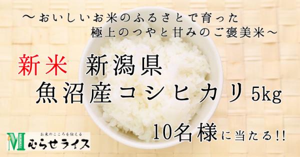 アンケートにお答えいただいた方の中からむらせライス 27年産新米「新潟県魚沼産コシヒカリ 5kg」を抽選で10名様にプレゼントいたします。