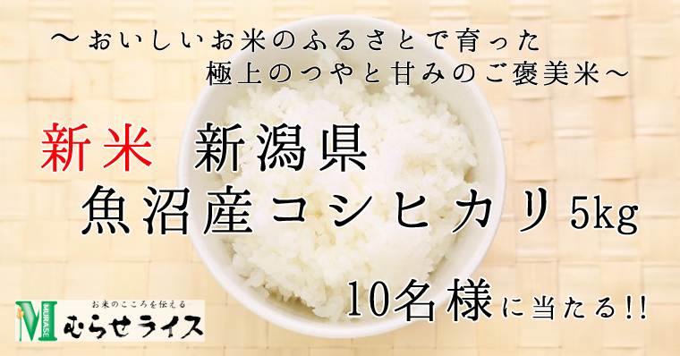 「27年産新米 新潟県魚沼産コシヒカリ 5kgが10名様に当たる」むらせライスモニプラキャンペーン
