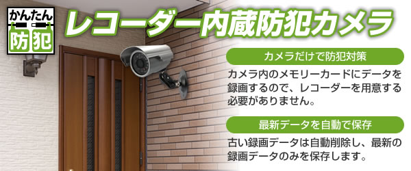 ・ カメラ内のメモリーカードに録画する事により、別置きの録画機が不要になり省コストと簡単設置を実現しました。
