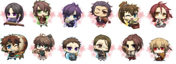 「薄桜鬼 真改 風ノ章」に登場するキャラクターたちが、楽器を演奏しているかわいい「ちびキャラ」になって登場。このイラストを使用したキャラクターパネルの展示や、オリジナルグッズの販売を行います。