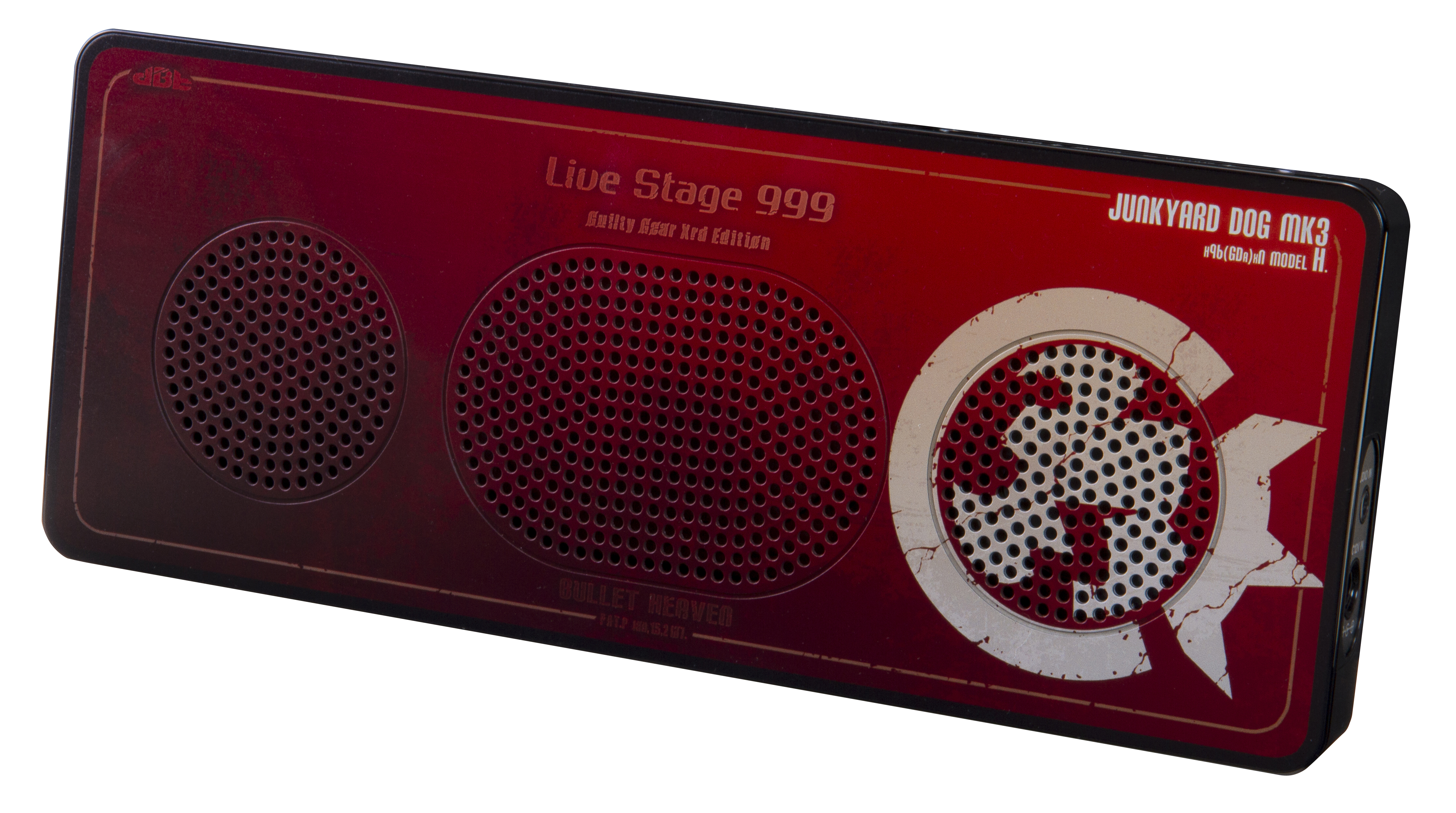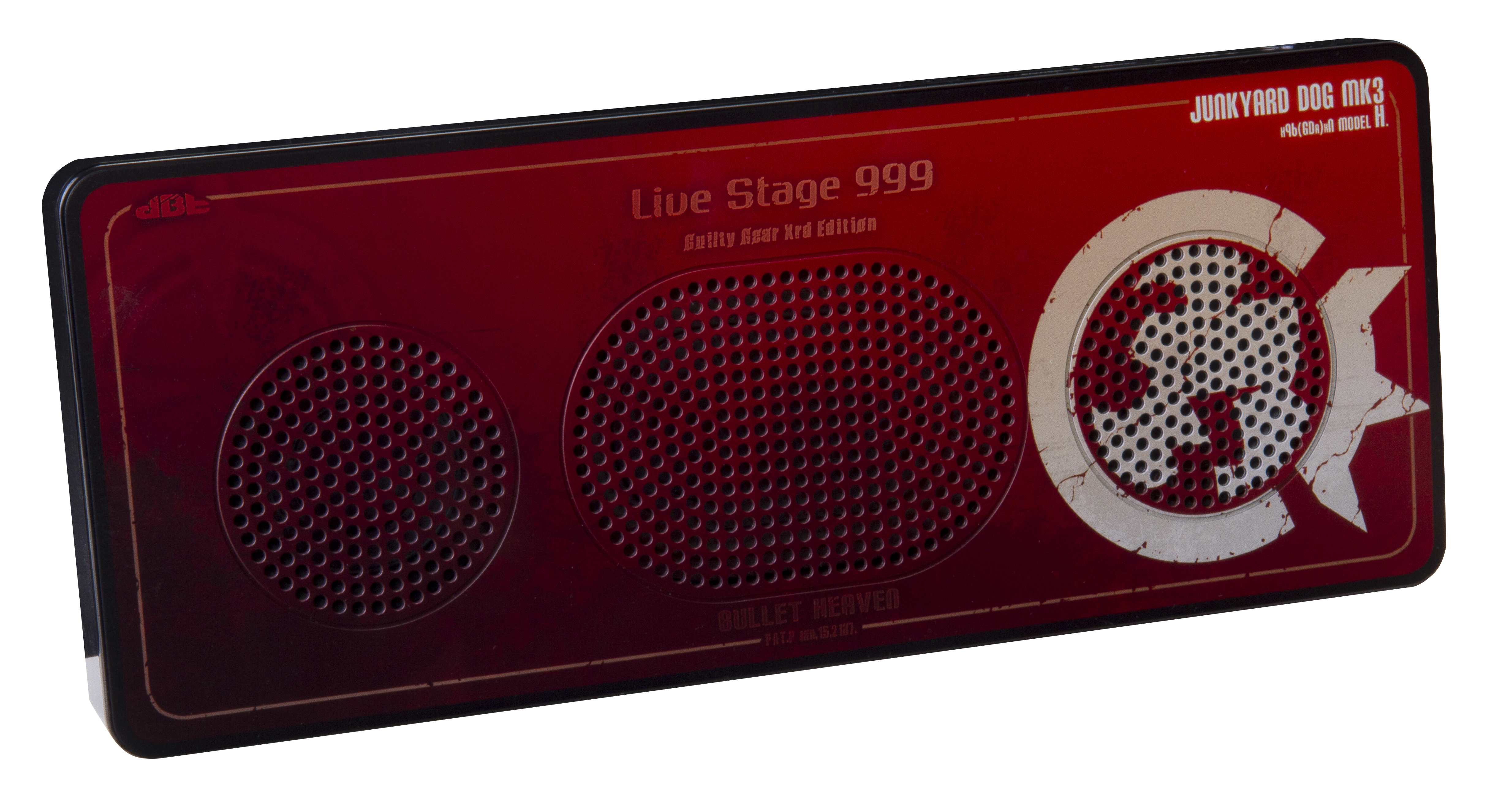 本商品は、Bluetoothスピーカー「Live Stage 999」に大人気の2D対戦格闘ゲーム「GUILTY GEAR Xrd」の主人公「SOL(ソル)」をイメージしたカラーと同キャラクターの武器ジャンクヤードドックをモチーフにしたデザインを採用し、さらに特別限定ステッカーを配しています。