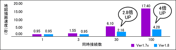 マルチプロセス(Webガーデン)に対応することで、サーバの負荷が大きい状態における地図描画、検索、編集機能などのパフォーマンス改善を実現しました。