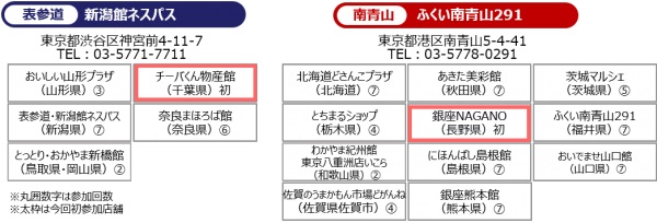 ショップ『銀座NAGANO』と、千葉県アンテナショップ『チーバくん物産館』が、今回初参加となります。
