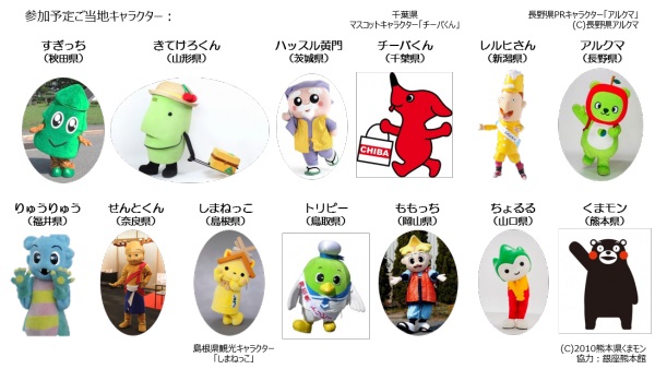 期間中は13県からご当地キャラクターが応援に駆けつけます。