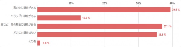 39.5%のママさんが「家の中に植物がある」とご回答され、家の中に植物を置いて日々の生活の中に緑を取り入れているということが分かりました。