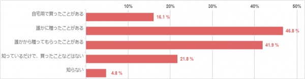 「贈ったことがある」というママさんが46.8%、「贈ってもらったことがある」というママさんが41.9%で、プリザーブドフラワーはギフトとして人気であることが分かりました。