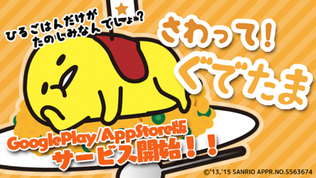 株式会社グッドラックスリー(本社:福岡県福岡市、代表取締役CEO:井上和久、以下「グッドラックスリー」)とギャザリング株式会社(本社:東京都千代田区、代表取締役社長:戸田和宏、以下「ギャザリング」)は、株式会社サンリオ(本社:東京都品川区、代表取締役社長:辻信太郎、以下「サンリオ」)よりライセンス許諾を受け、人気キャラクター「ぐでたま」が登場するゲームアプリ『さわって!ぐでたま』(以下、本作)をGooglePlay/AppStoreにて、本日2015年10月22日(木)に配信を開始したことをお知らせいたします。