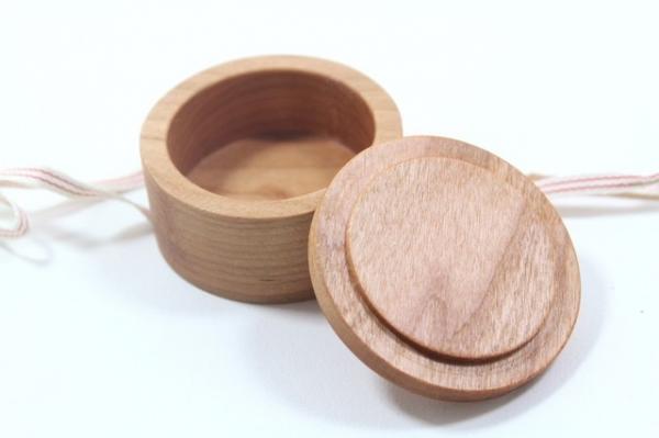 小さい木のかたまりをくりぬいて作ったへその緒入れです。