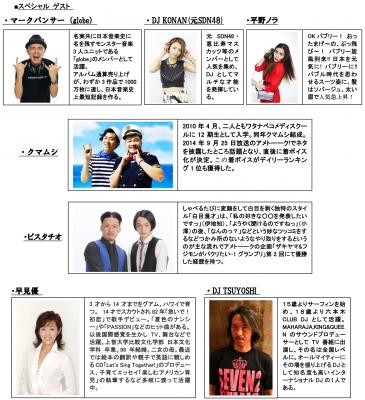昔も今も変わらない人気のアイドルから人気芸人、有名DJと総勢9名が勢ぞろい致します。