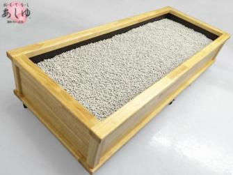 設置も、岩盤石が搭載された木枠にセラミックボールを入れ、ヒーターの電源を